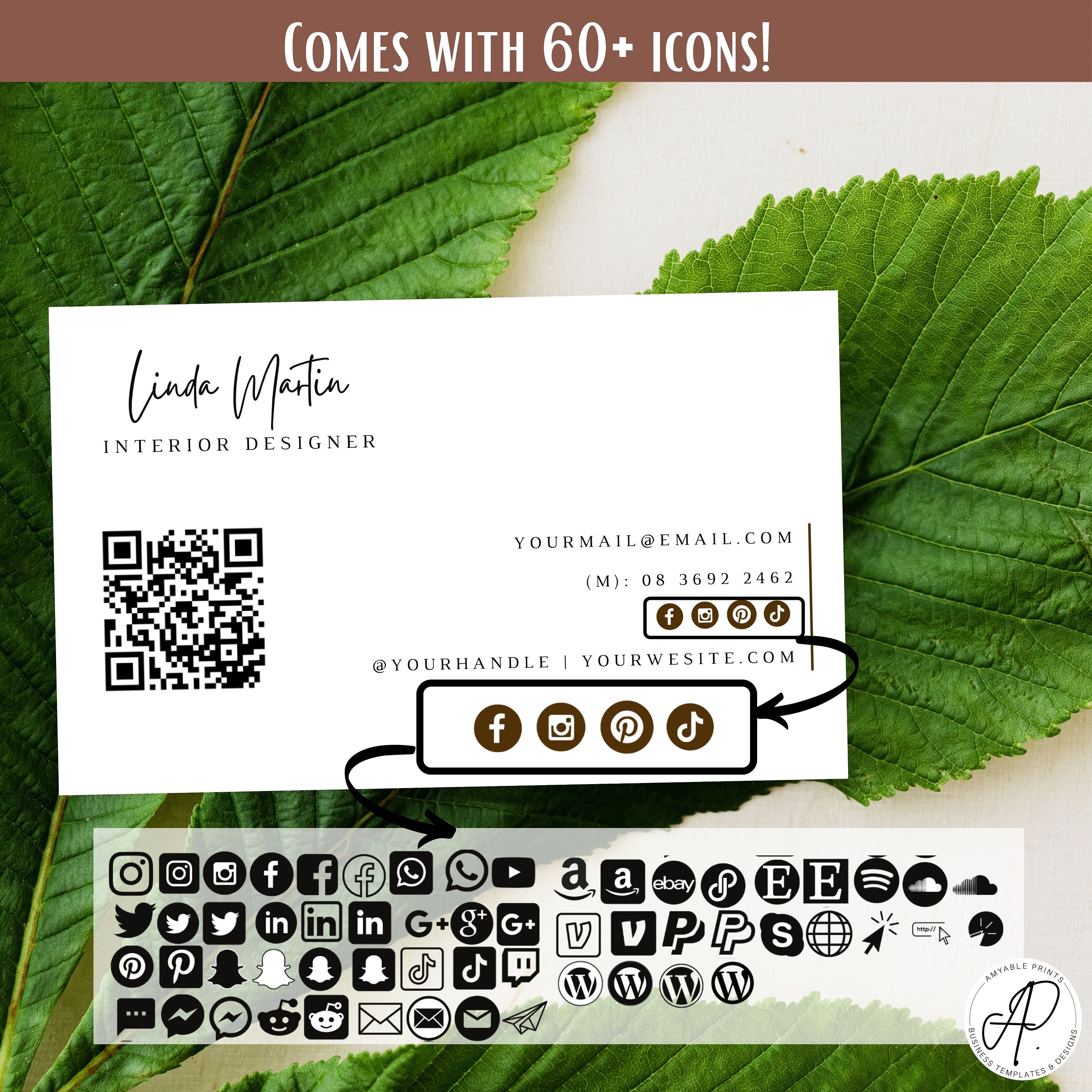 Boho Business Cards With Qr Code Minimalist Business Card Etsy Schweiz