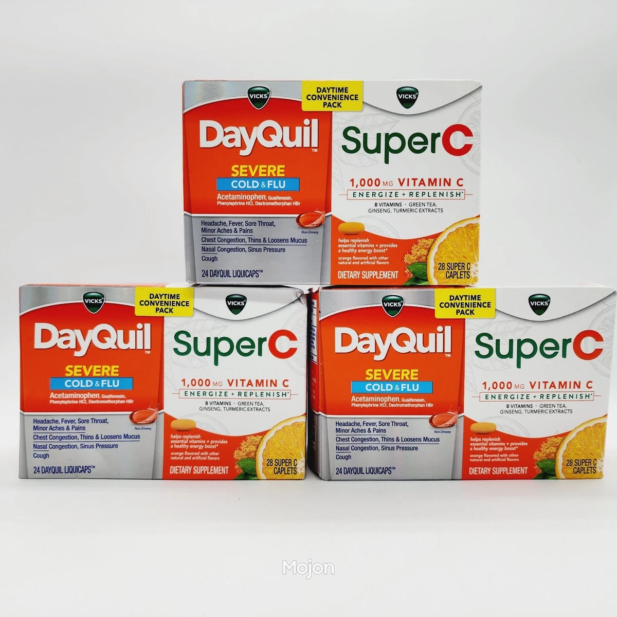3 Packs Vicks Dayquil Severe Cold Flu Super C 1 000mg Vitamin C Exp 7 24 Ebay