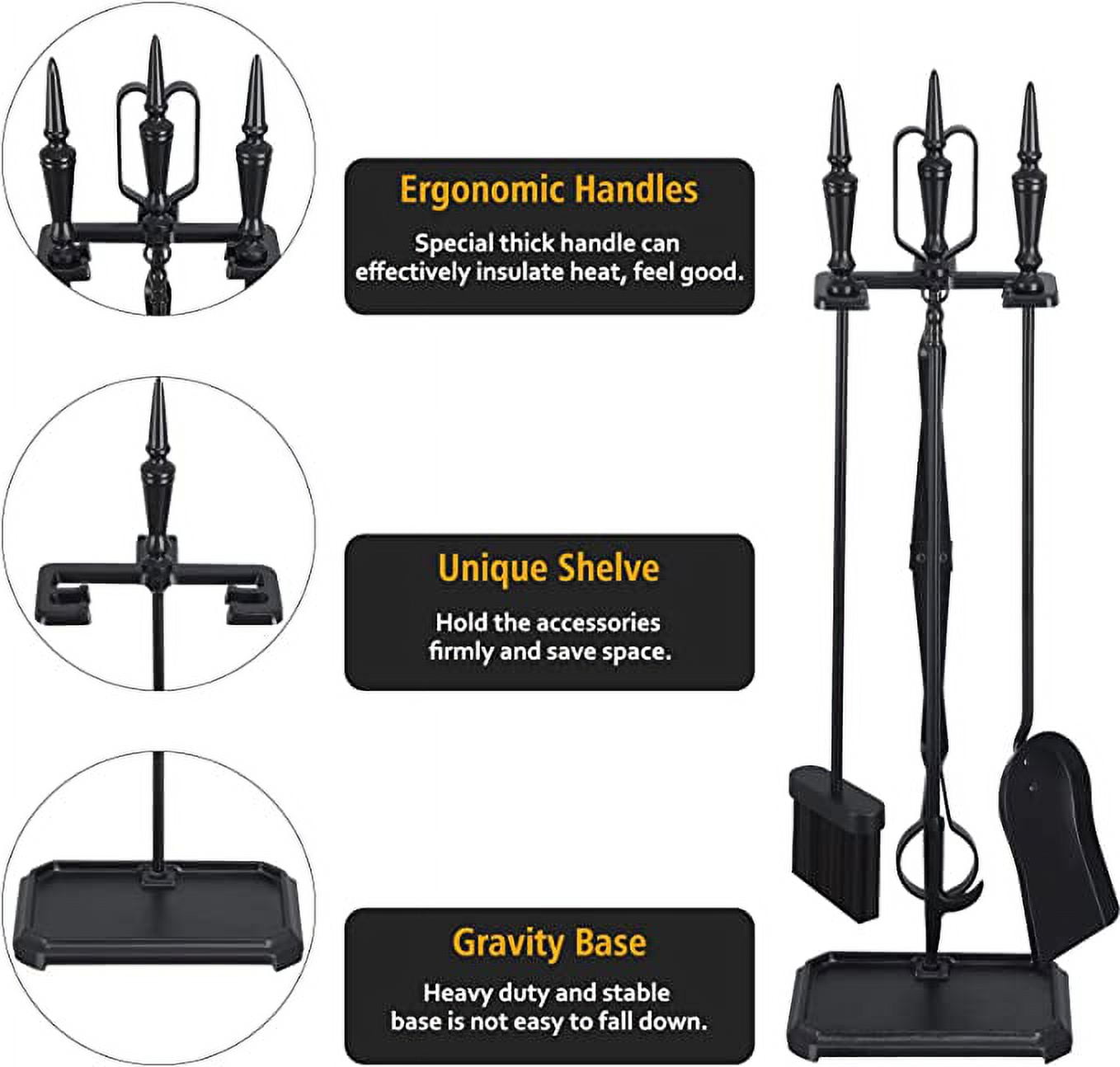 Best Choice Products 5 Piece Fireplace And Firepit Iron Tool Set W Tongs Poker Broom Shovel Stand Black Walmart Com