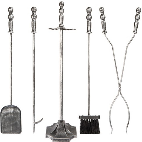 Best Choice Products 5 Piece Fireplace And Firepit Iron Tool Set W Tongs Poker Broom Shovel Stand Pewter Target